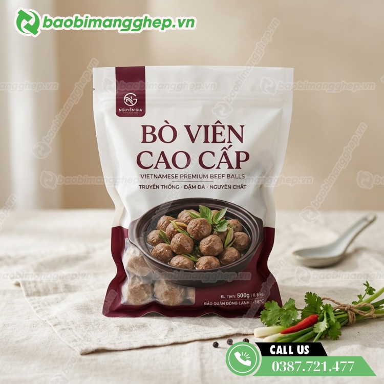 Bao bì đựng bò viên được thiết kế với đa dạng kiểu dáng phù hợp với nhu cầu phân phối, kích hàng mục tiêu và nhu cầu bảo quản: