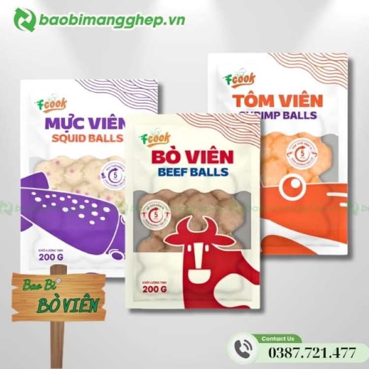 Bao bì đựng bò viên đẹp, hình in sắc nét