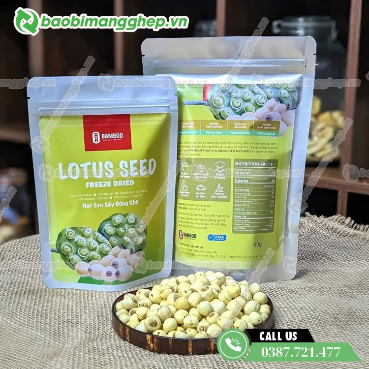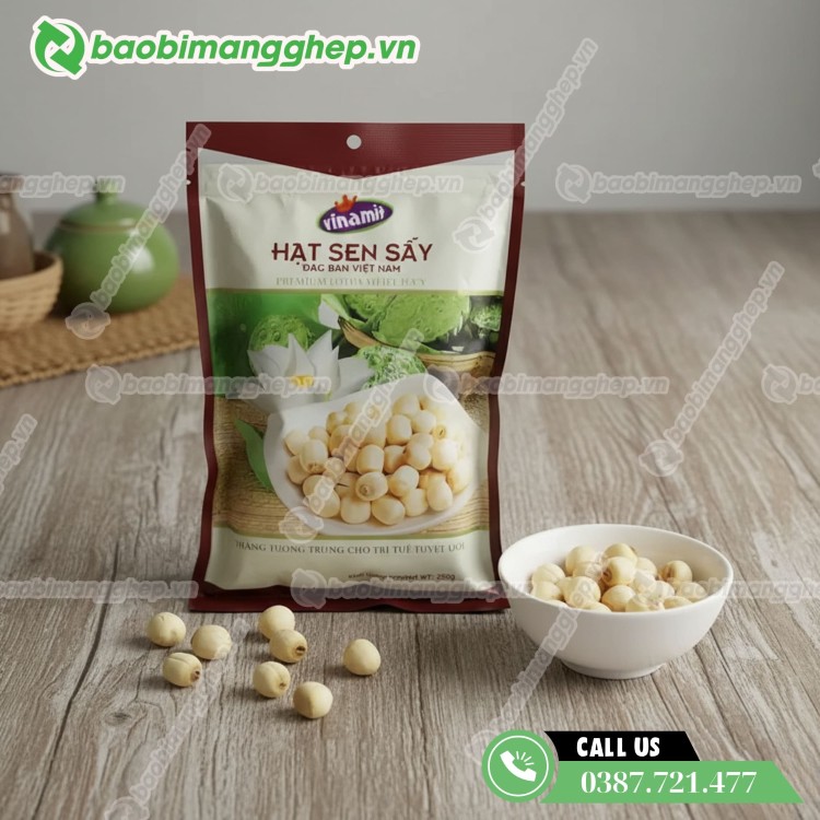 Bao bì hạt sen sấy khô giá sỉ, in ấn đẹp mắt