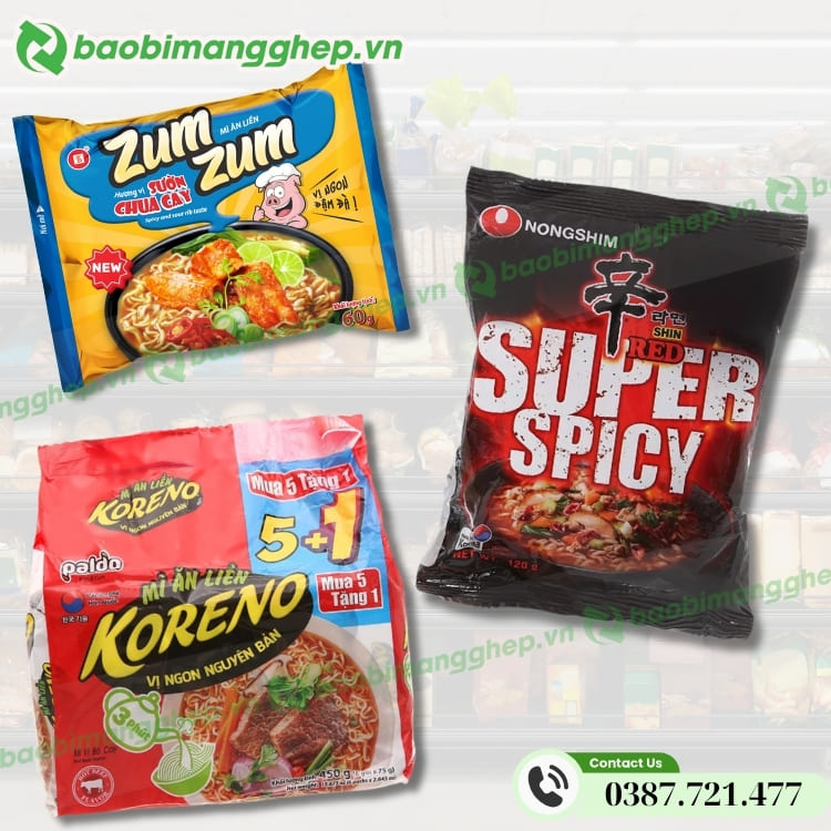 Xem ngay những mẫu bao bì đóng gói mì tôm đẹp, chất lượng, in ấn theo yêu cầu tại Bao Bì Màng Ghép Thành Tiến: