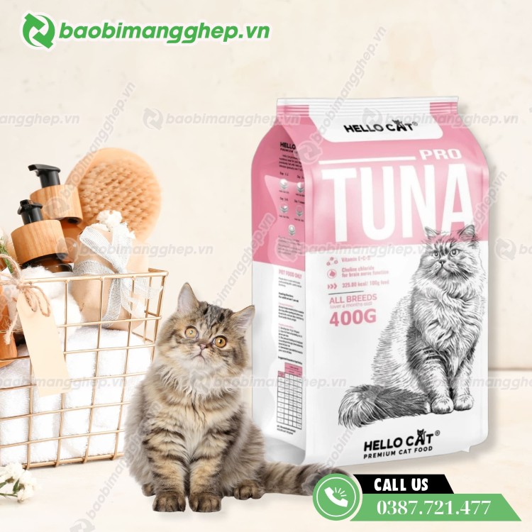 Túi đựng thức ăn cho mèo in ấn đẹp, chất lượng bảo quản tốt