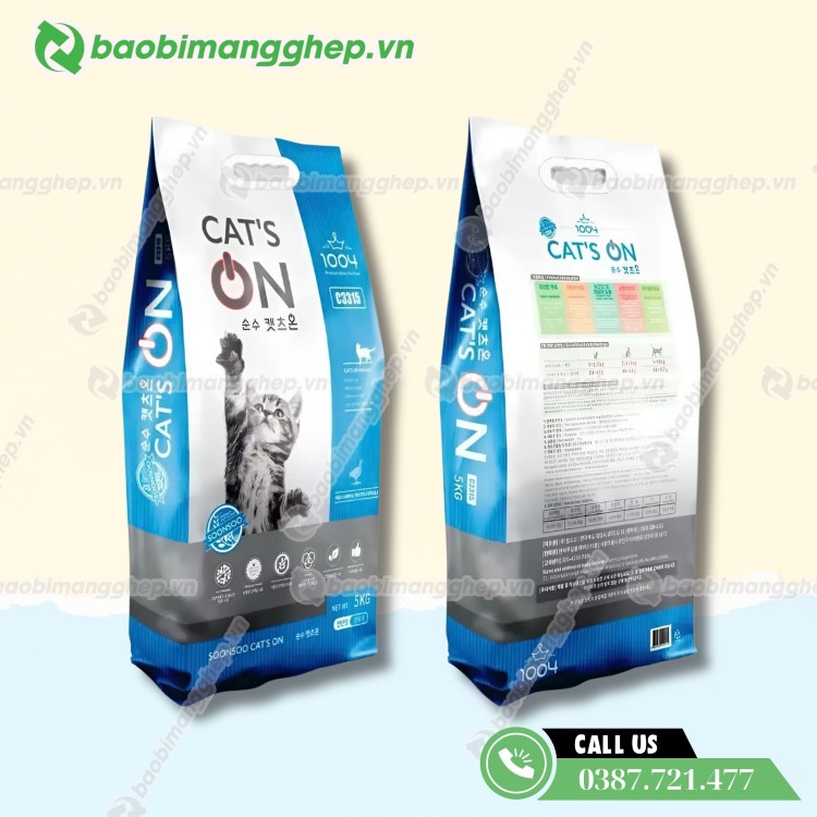 Bao bì thức ăn cho mèo in đẹp, thông tin rõ ràng