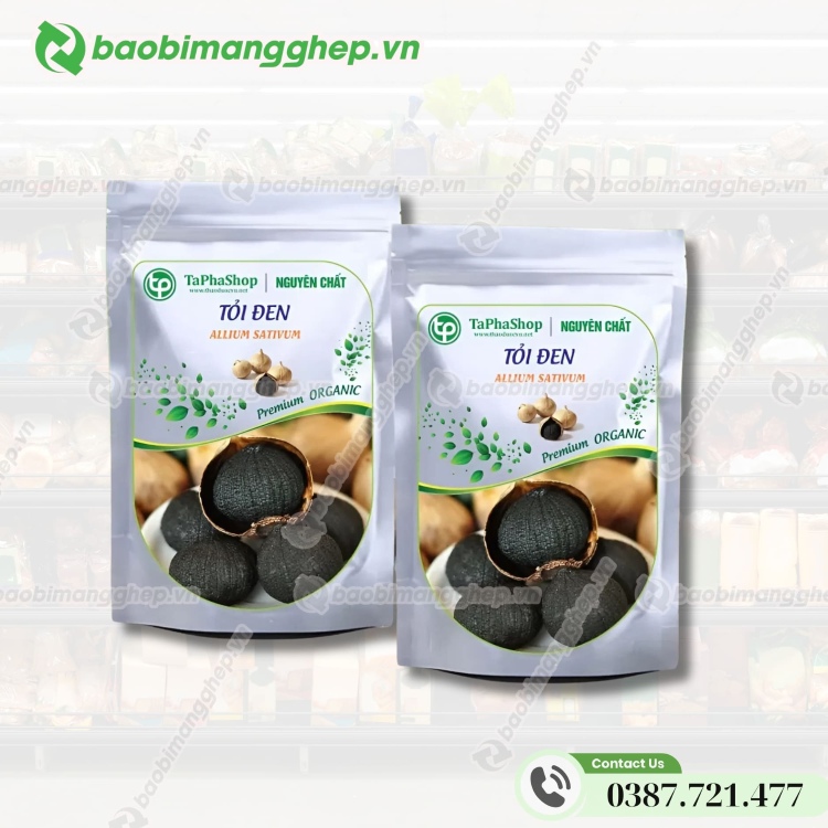 Tỏi đen, thực phẩm bổ sung giàu chất chống oxy hóa được lên men từ tỏi tươi mang lại nhiều lợi ích cho sức khỏe. Việc chọn một mẫu bao bì chất lượng quyết định đến giá trị dinh dưỡng, hương vị và cả tuổi thọ của sản phẩm. Bao bì tỏi đen được sản xuất tại Bao Bì Màng Ghép Thành Tiến là một trong những giải pháp bảo quản hiệu quả. Trong bài viết này chúng tôi sẽ cung cấp đầy đủ những thông tin về mẫu bao bì này giúp bạn dễ dàng tìm hiểu và lựa chọn.