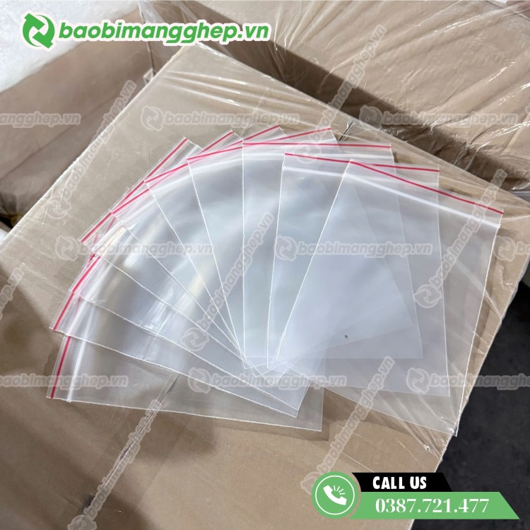 Mẫu túi zip chỉ đỏ trong suốt dễ nhìn thấy sản phẩm bên trong